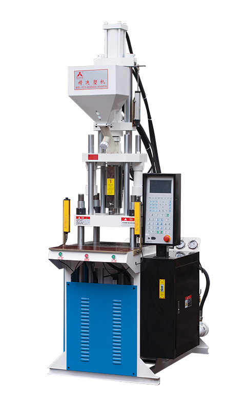 立式四柱直压锁模,立式注射,锁模力30-300吨。下模固定,上模活动,对于镶嵌物件有良好定位,适合镶嵌物件的注塑成型。